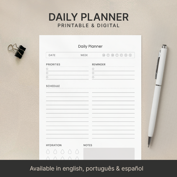 Minimalist Daily Planner, Planner Template, Printable & Digital (A4, A5, Letter)